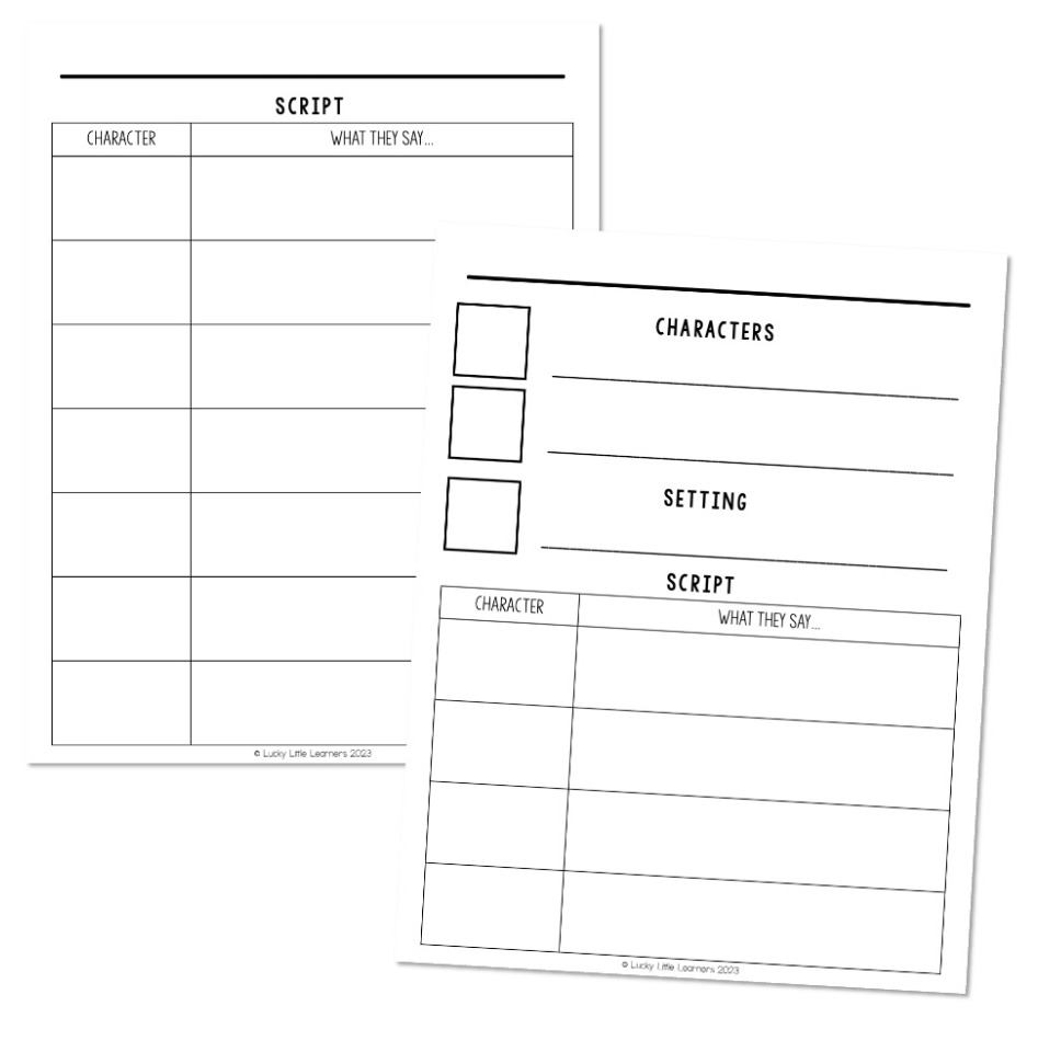 Kids love readers theater. Use that excitement to have them use their creative part of their brain to write a play, make a movie or perform a puppet show based on a book’s plot, or comprehension questions provided by the teacher. Students can make their own puppets using construction paper and popsicle sticks. Grab a blank script template below!