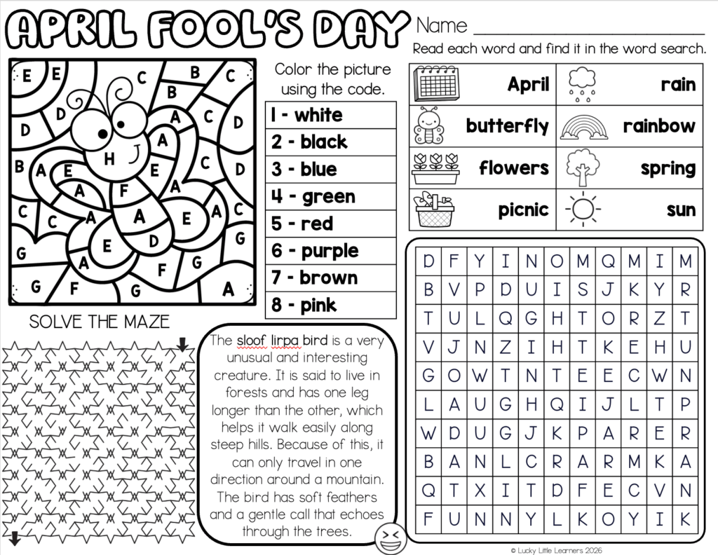 Team Lucky Little Learners created a free reading passage to use on this funny day. Sign up below to snag your freebie.
