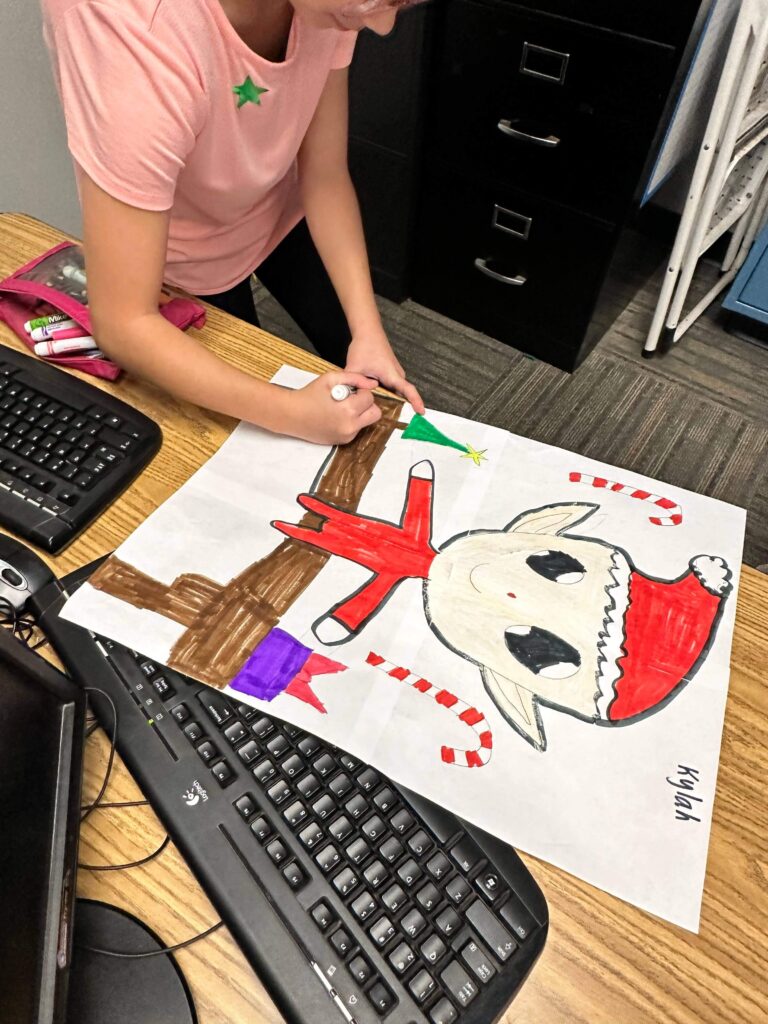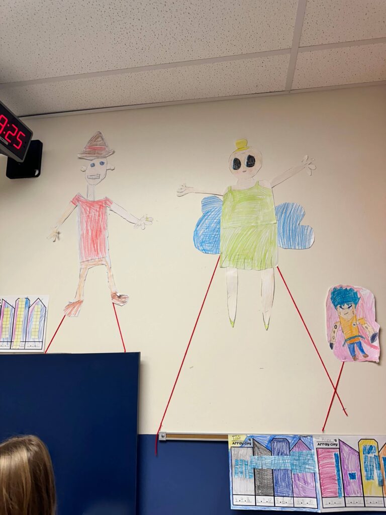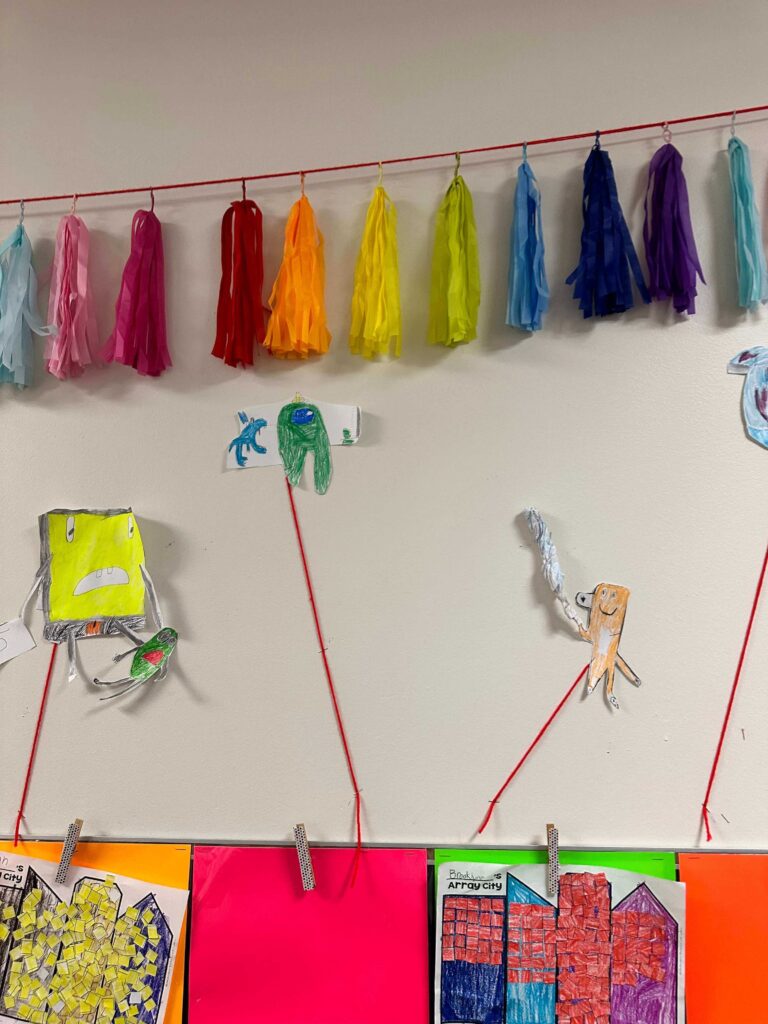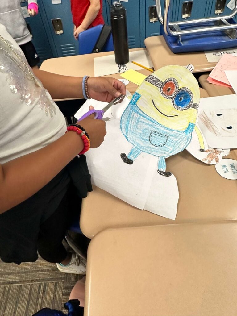 Once students are done drawing, it is time to create their parade balloon. Supply students with an already blown up balloon. (Saves so much time!) Set out construction paper and let students draw, cut out and tape their characters to their balloons.