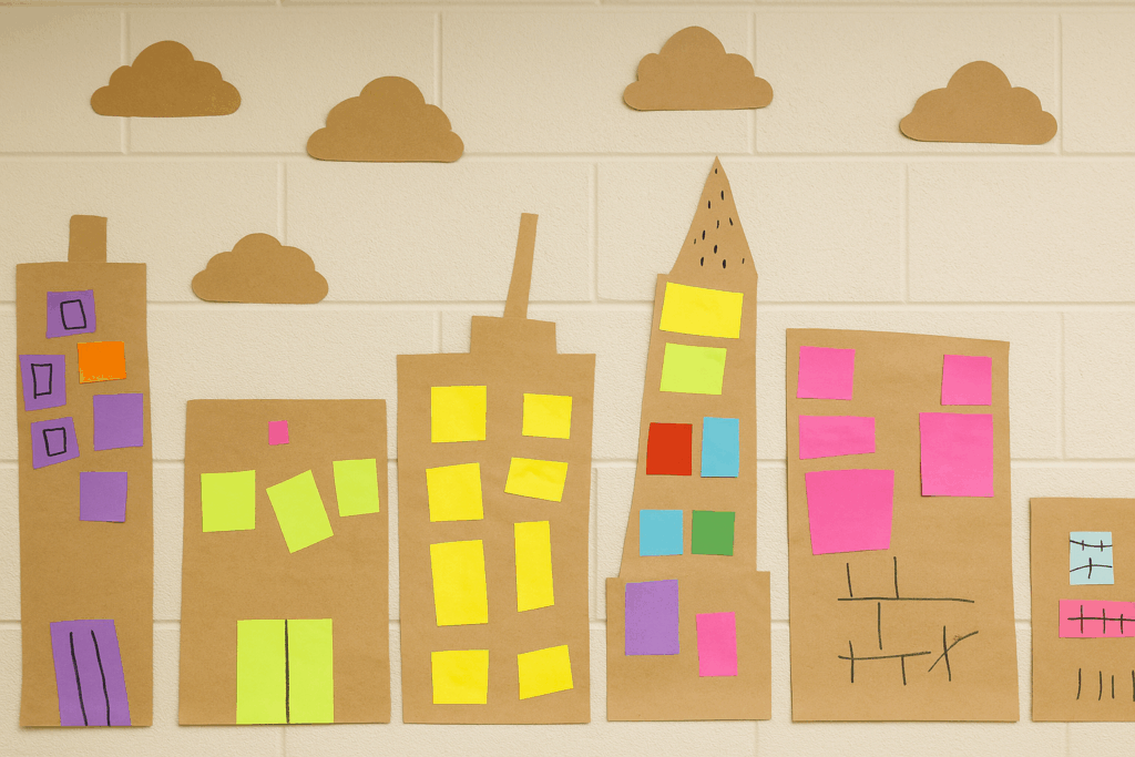 Most of you probably do NOT live on Broadway in New York. So, how can you bring the parade atmosphere to your classroom? There are two easy options: project an image or create butcher paper skyscrapers.