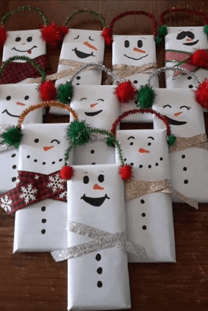 5. Andrea F. wraps books like snowmen and adds Shein holiday socks, fun pens, and a ring pop. “It’s festive and simple.”