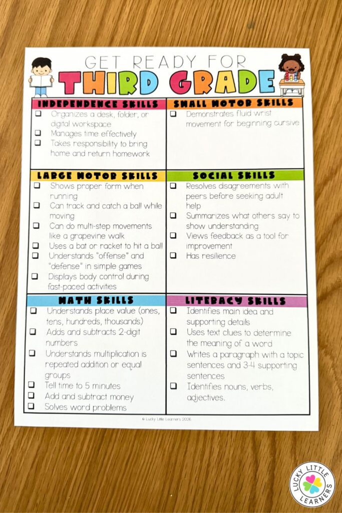 This gives parents a clear picture of what children should be able to do before the first day of school.